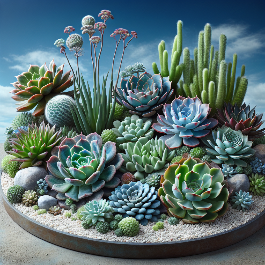 Mix different types of succulents, including cacti and agave, for varied textures. Ensure you’re contrasting heights and colors to create visual interest.