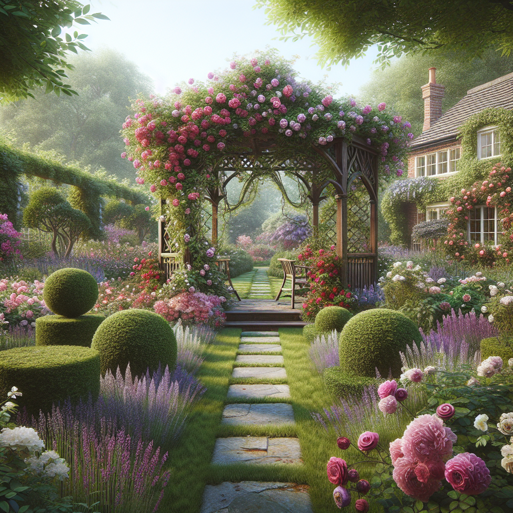 - Shrubs and Roses: English gardens often feature a wide variety of flowering shrubs and climbing roses, enhancing the romantic aesthetic.